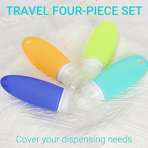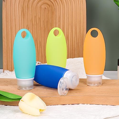 Cehomi Travel Bottles Set for Toiletries, 4 Pack 3 oz Tsa Approved Travel Size Containers BPA Free Leak Proof Refillable Silicone Squeezable Travel Accessories with Keychain Hole