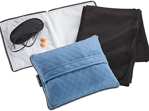 PERFECT GIFT: Set includes super soft cozy fleece blanket (50x38in), inflatable pillow, eye mask, and foam ear plugs – makes the perfect gift for the avid traveler in your life