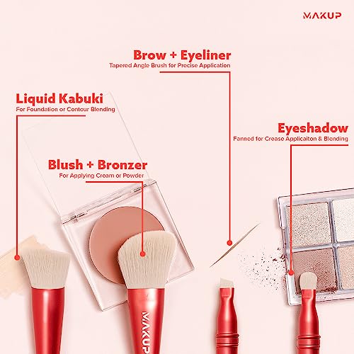 Includes a Liquid Foundation/Contour Kabuki Brush, Blush/Bronzer Brush, Eyeshadow Brush & Eyeliner/Eyebrow Brush.