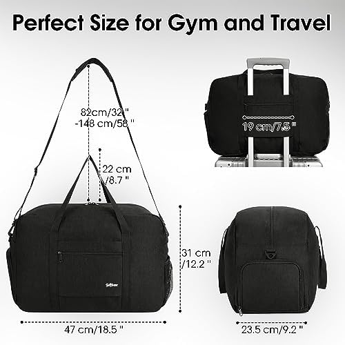 Upgraded THICKENED Fabric: Dimensions when full: 19” x 12” x 10” with 38L capacity, folds flat 10” x 7” x 1.2”, weights only 1lbs, which is 30% lighter than traditional gym bag. Made with durable, more thicker, water-resistant material with premium zippers. It features dual handles and an adjustable, detachable and padded shoulder strap for total comfort. The sturdy polyester body makes this bag ideal for long-term use