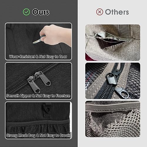 Dry & Wet Compartment Separation: This gym tote delivers spacious storage with 1 large main zippered compartment for dry & clean clothes or everything for gym & traveling you necessary, and 1 upgraded waterproof PVC lined pocket (16.5” x 13”) with zipper for wet items alongside the main compartment, in addition, 1 front external small zipper pocket for easy, on-the-go storage